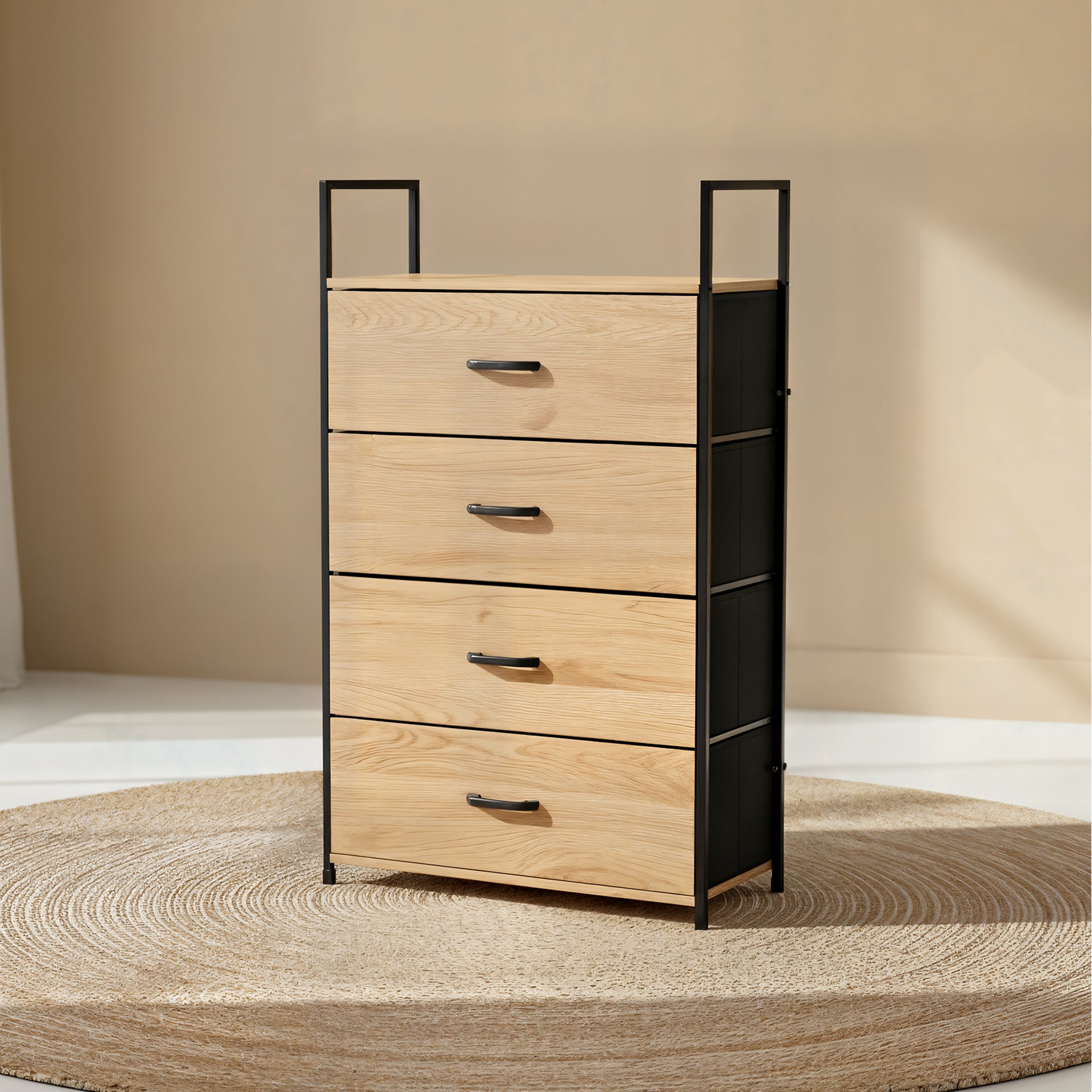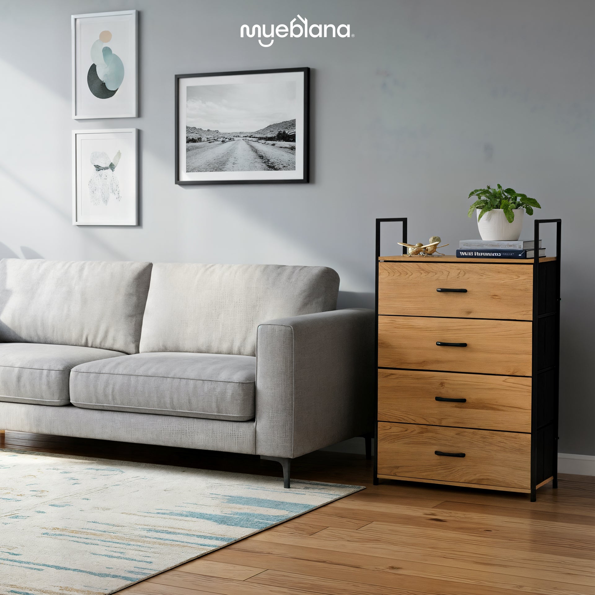La Comoda Cajonera Lima es perfecto para ubicar en cualquier espacio de tu hogar. ¡Excelente para guardar y organizar tu armario, sala y oficina! Es un mueble con estructura de acero, melamina y tela.