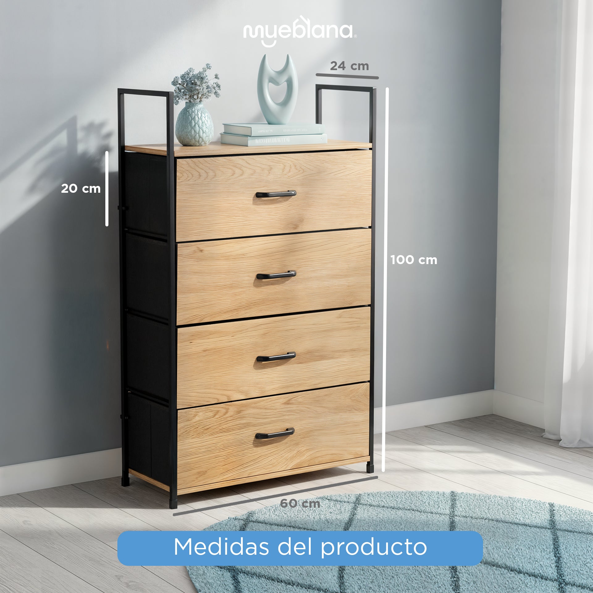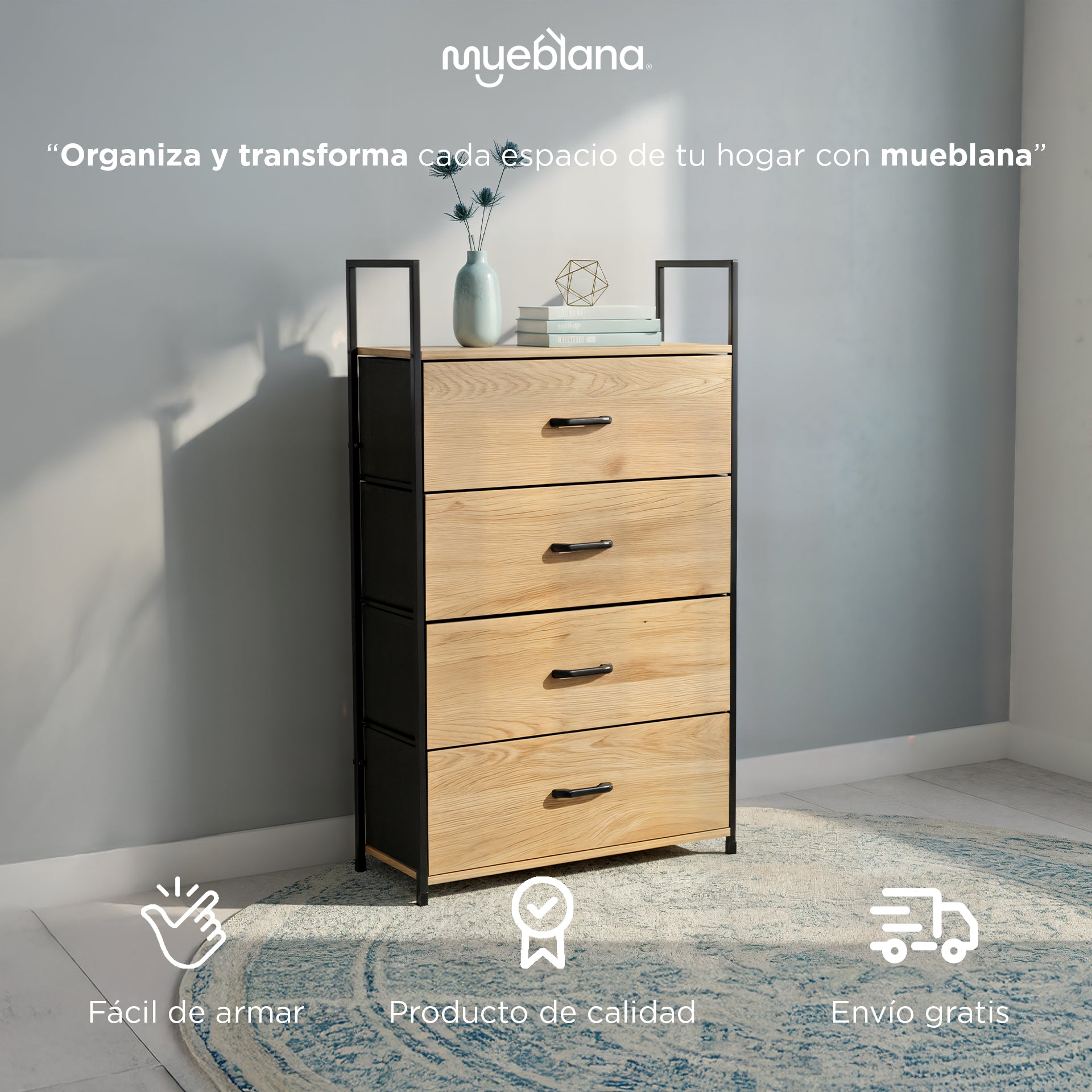 Cuenta con: 4 cajones y 1 repisa