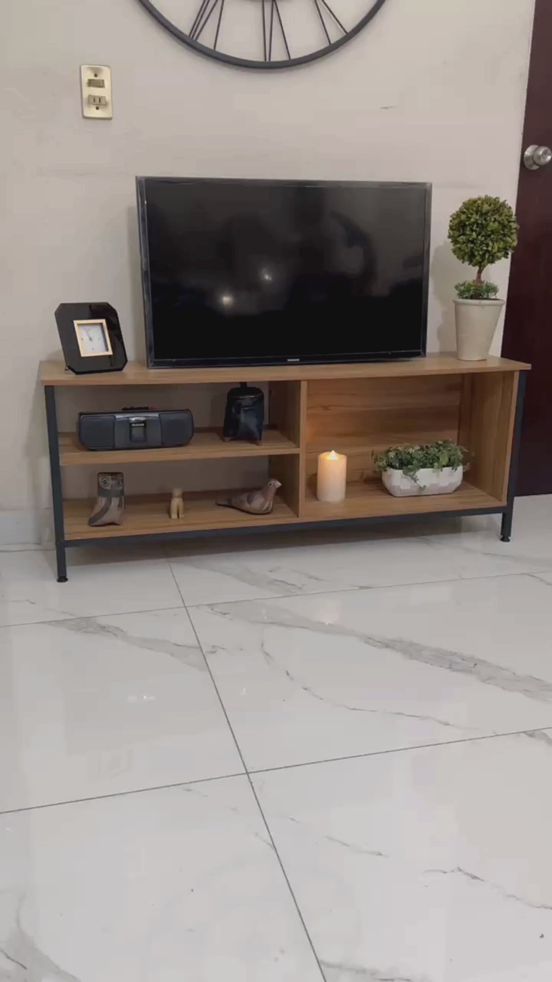 • Capacidad de Soporte: Esta mesa para TV tiene capacidad para soportar televisores de hasta 55 pulgadas, brindándote flexibilidad en la elección de tu pantalla.