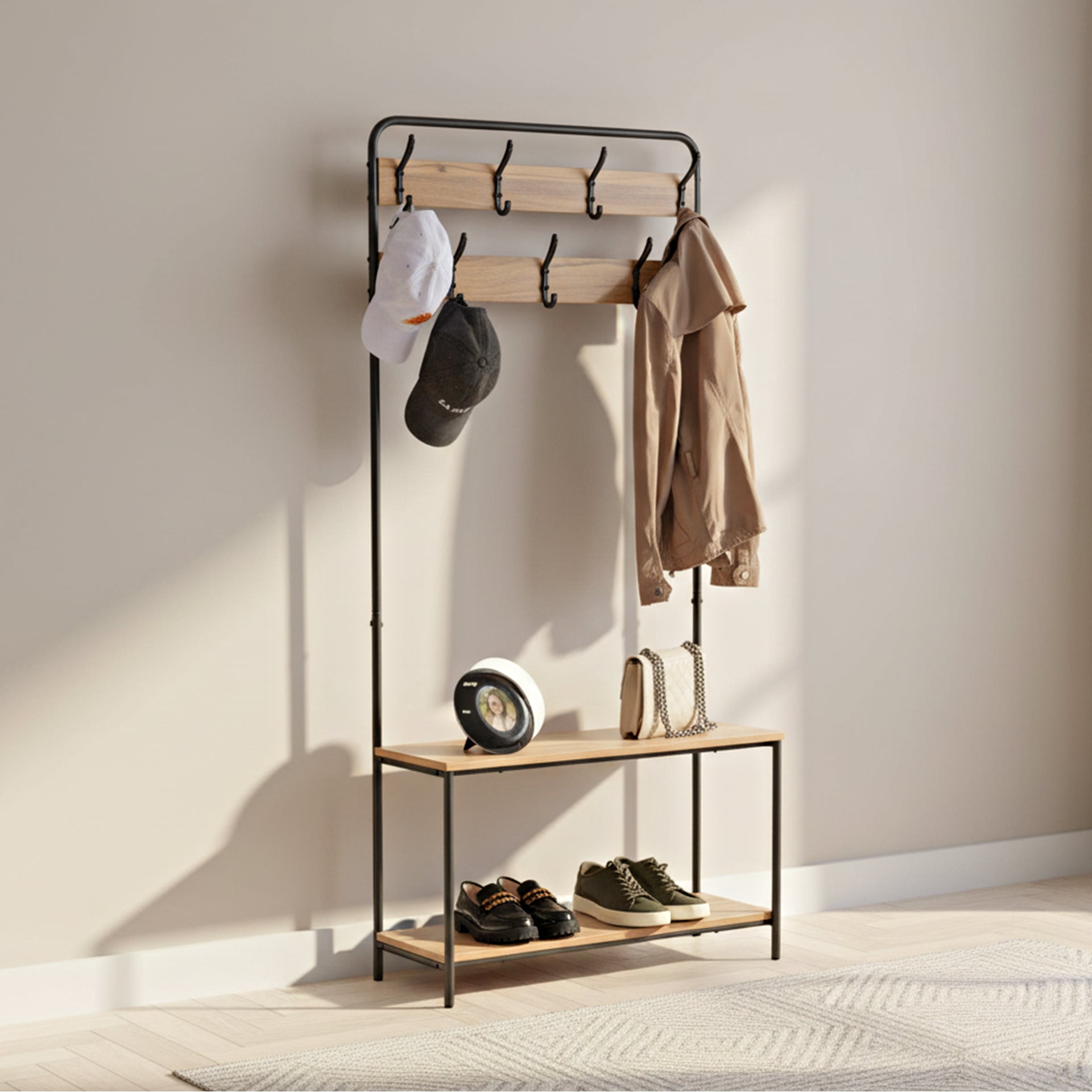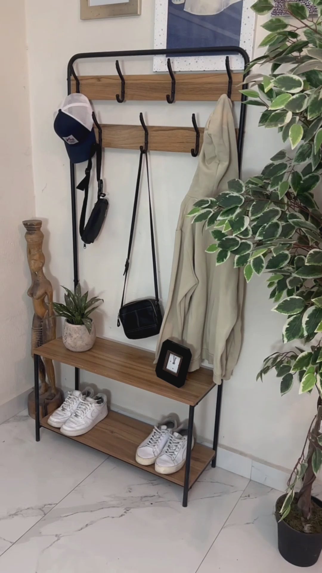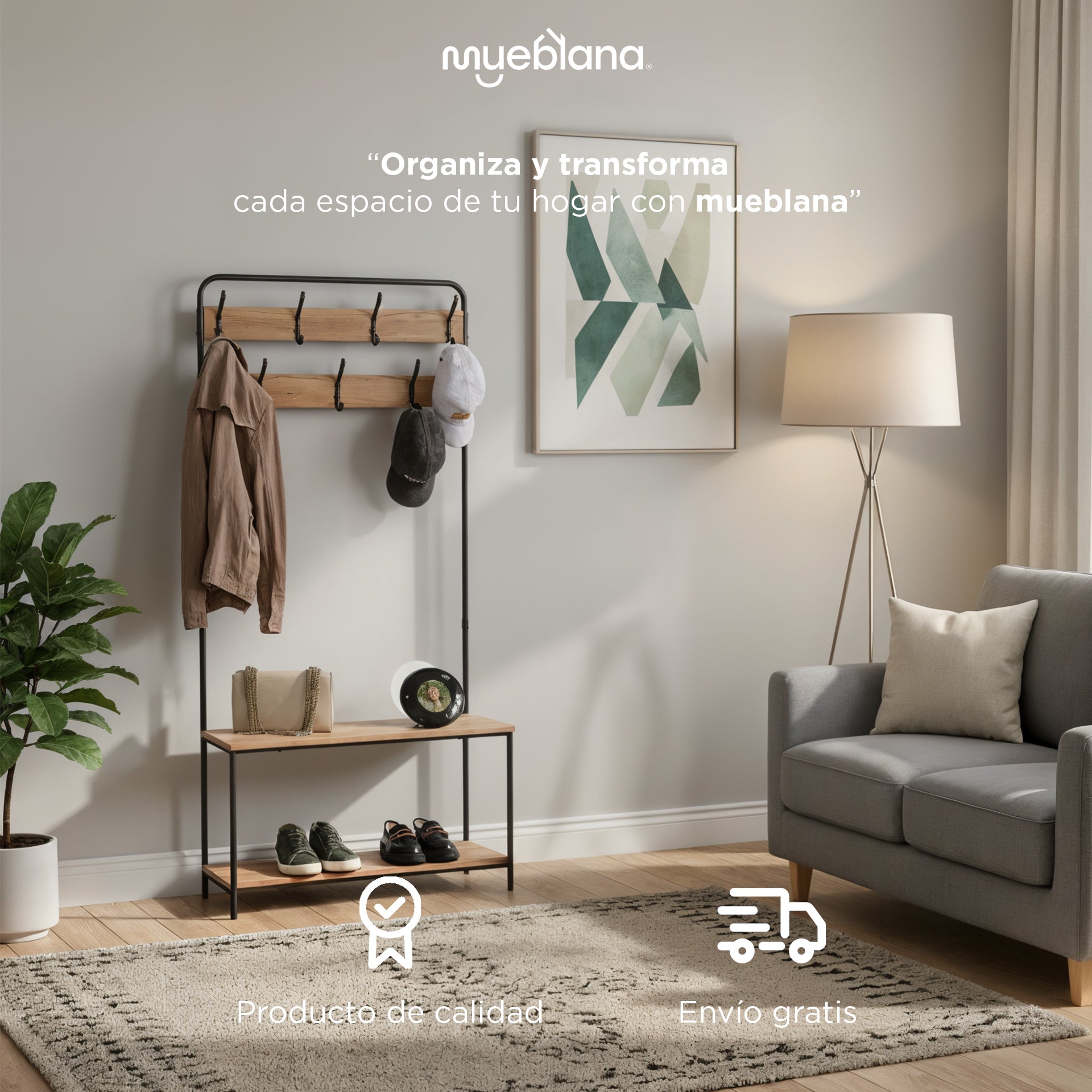 El Perchero Armenia es perfecto para ubicar en cualquier espacio de tu hogar. Funciona como zapatero, perchero, recibidor o librero y lo puedes instalar en tu sala, oficina, cocina, terraza o baño. Es un mueble con estructura de acero y melamina.